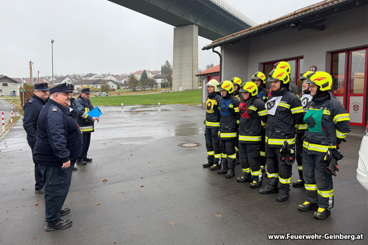 Nach intensiver Vorbereitung stellten sich 13 Kameradinnen und Kameraden der Feuerwehren Geinberg, Roßbach und Antiesenhofen der Leistungsprüfung. Die Abnahme fand am Samstag, den 08. November 2025 durch die bayrischen Kameraden vor der Zeugstätte der Feuerwehr Schalding r.d.D. (Passau) statt. Alle Teilnehmer legten die Prüfung mit Erfolg ab – Herzliche Gratulation zu den erbrachten Leistungen! Zwei Kameraden konnten die sechste, und somit letzte Stufe des Abzeichens erreichen!