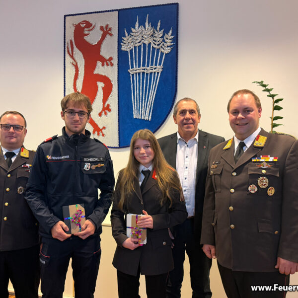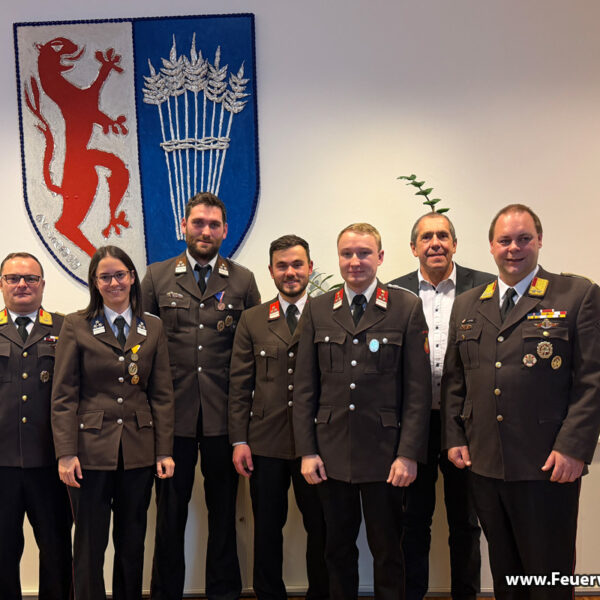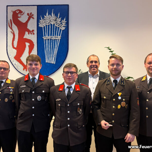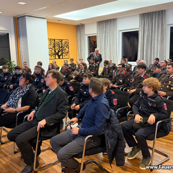 Nach den kurzweiligen und informativen Berichten fand die Verleihung der erworbenen Abzeichen, Beförderungen und Auszeichnungen statt. Herzliche Gratulation allen Geehrten! Hervorzuheben neben der Übergabe der Abzeichen an die Feuerwehrjugend auch die Verleihung der Feuerwehrdienstmedaillen für 40 bzw. 50 Jahre an LM Karl Fuggersberger und E-HBM Josef Petermaier. In ihren Ansprachen lobten BR Mathias Zarbl und Bgm. Franz Ludwig Reitinger die Arbeit im abgelaufenen Jahr, welches sowohl nach aufgewendeten Stunden, als auch nach Einsatzzahlen eines der ereignisreichsten Jahre unserer Wehr ist.
