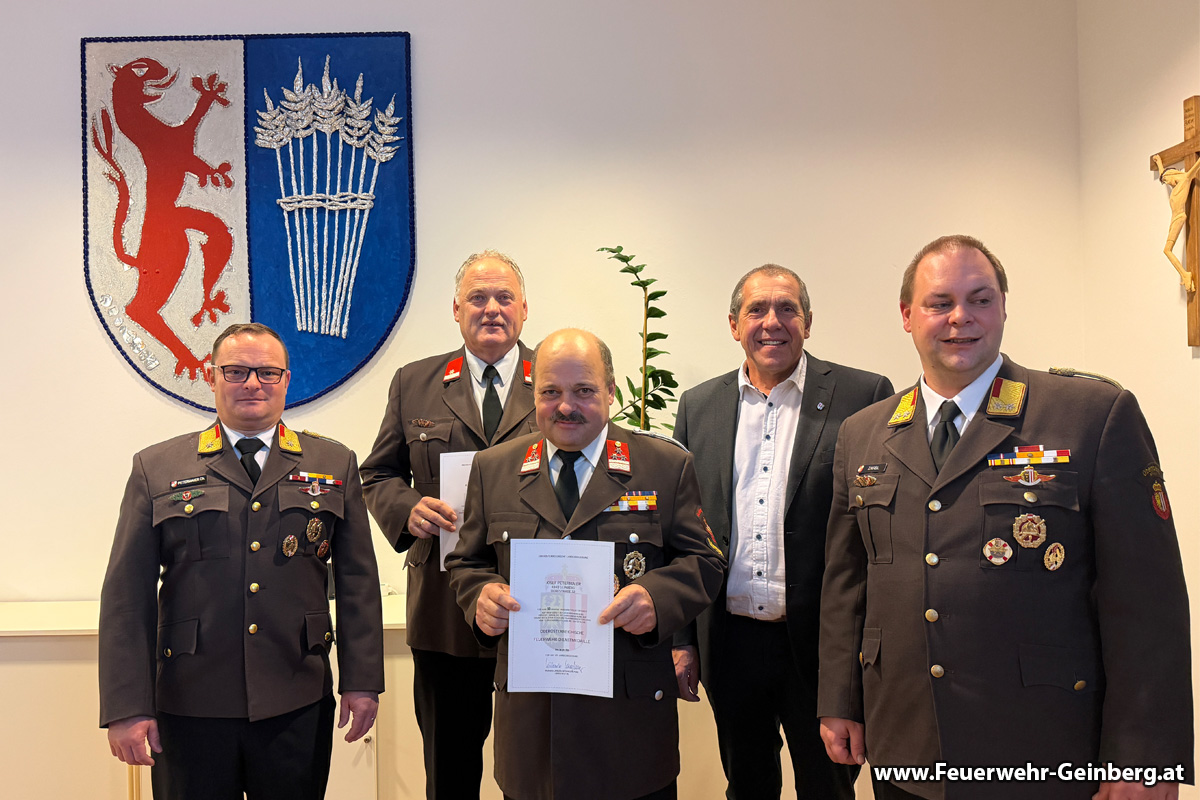 Am Freitag, den 28. November 2025 fand die 131. Jahresvollversammlung der Feuerwehr Geinberg im Sitzungssaal der Gemeinde Geinberg statt. Neben dem Abschnitts-Feuerwehrkommandanten BR Mathias Zarbl und dem Kommando der FF Moosham, konnten seitens der Lokalpolitik Bürgermeister Franz Ludwig Reitinger, Vizebürgermeister Mag. Hannes Gadermair, sowie die Gemeindevorstände Gabriele Mann und Bruno Prentner begrüßt werden.
