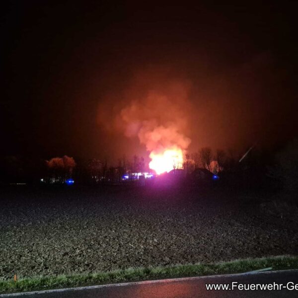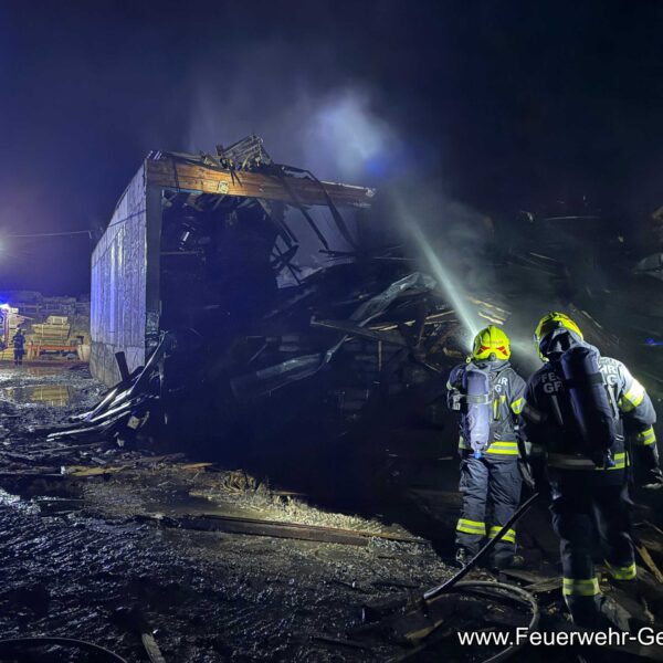 Am späten Abend des 16. März wurde die Feuerwehr Geinberg gemeinsam mit zahlreichen weiteren Feuerwehren zu einem Großbrand im Ortsteil Freiling (Gemeinde Gurten) alarmiert.
